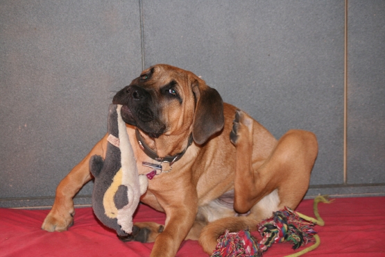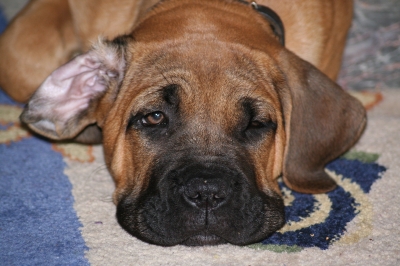 Naja,ich bin nicht wirklich Reinrassig da meine Mama ein Cane Corso/Bordeaux Doggen-Mix ist. Mein Papa ist ein großer und sehr schwerer Cane Corso. Mein Wesen ist : gelehrig, arbeitsfreudig, ruhig, freundlich, kinderlieb, treu, anschmiegsam, verspielt, sportlich und ich verhalte mich Fremden gegenüber eher gleichgültig und uninteressiert insofern meine Familie oder deren Besitz nicht bedroht werden. Aber ich bin erst 11 Wochen alt, also ist mein Wesen eher noch als "Schuhe zerkauend, Herrchen und Frauchen in die Füße zwickend, nervig, tolpatschig,super dickköpfig und zu allem Blödsinn bereit sein" zu bezeichnen. :o) Sooo...es ist geschafft...Ich bin 6 Monate jung, mein Gewicht liegt jetzt bei 34 Kg