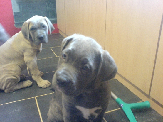 Hallo Wir suchen ein neues Zuhause Wir sind Cane Corso / Bordeaux-Doggen-Mix , wir sind 3 Mädels und sind am 12.11.2007 geboren. Unsere Fellfarben sind 1x dunkelbraun mit schwarzer maske und 2x dunkelblau-gestromt. Bei der Abgabe sind wir geimpft und entwurmt. Unsere neue Familien sollten viel Liebe , Zeit und ganz viel Intresse für uns haben. Was nichts anderes heißt das wir nur in gute Hände abgegeben werden! Damit ihr einen ersten Eindruck von uns bekommt, sind hier ein paar Bildchen
